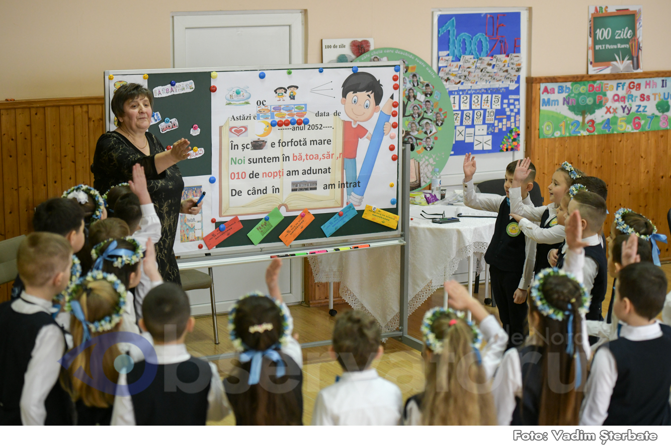 La Liceul Teoretic „Petru Rareș” din municipiul Soroca, în aceste zile au loc activităţi de aniversare a 100 zile de şcoală pentru picii din clasa întâi, implicați în programul educațional „Pas cu pas”. Astăzi, bunăoară, au marcat „centenarul” elevii clasei a I-a „b”, îndrumaţi de prima lor învăţătoare Violeta Nicuță.