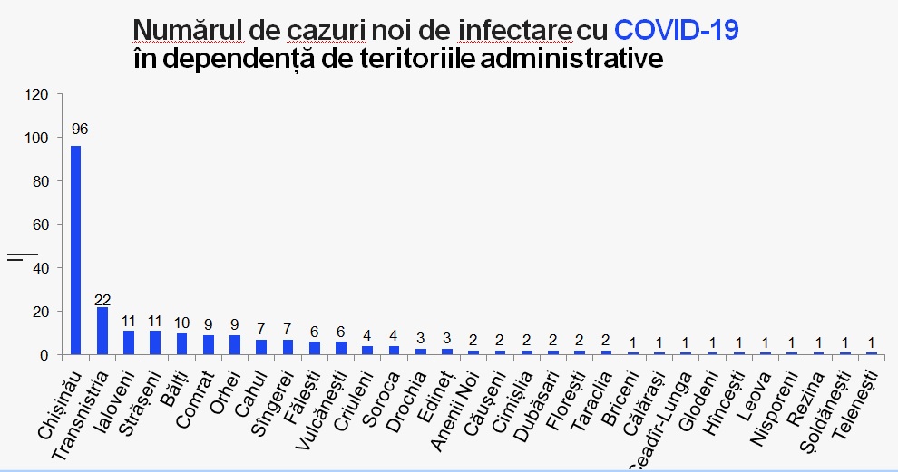 Deces 667: Femeie de 80 ani, din raionul Telenești. Internată la data de 10 iulie, la Spitalul Raional Telenești. Comorbidități: boală cerebrovasculară, encefalopatie, boala ischemică a cordului.