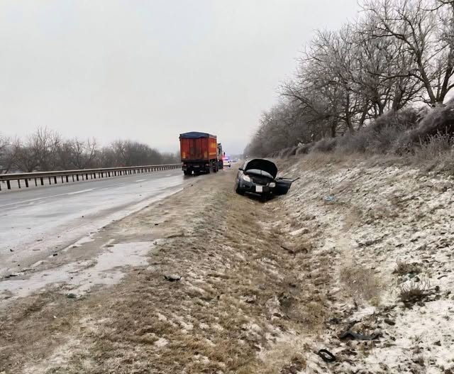 Potrivit informațiilor preliminare, șoferul unei Skoda, un bărbat de 43 de ani, efectua o depășire fără a adapta viteza la condițiile meteo, a pierdut controlul mașinii și a derapat tamponându-se cu un camion, după care s-a inversat într-un șanț de scurgere a apei.