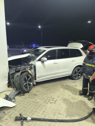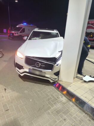 Impactul a fost violent: mașina a lovit mai întâi bordura, apoi a fost proiectată în pilonul metalic de susținere al acoperișului pompelor de combustibil. În urma coliziunii, atât vehiculul, cât și infrastructura stației au suferit avarii considerabile. La fața locului a intervenit ambulanța, un echipaj de poliție și pompierii.