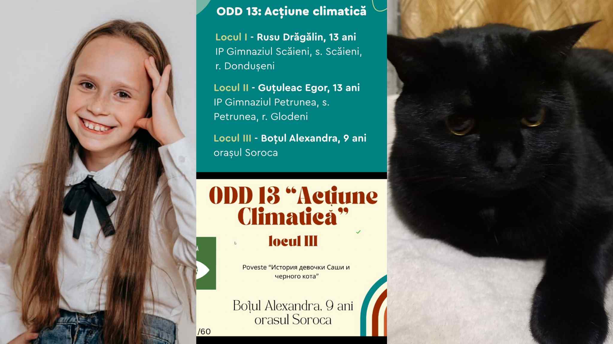 Printre tinerii autori s-a numărat și Alexandra Boțul, o fetiță de doar 9 ani, elevă a unei școli din orașul Soroca, care a obținut locul III cu povestea intitulată „Istoria fetiței Sasha și a pisicii negre” – o istorioară plină de imaginație, sensibilitate și învățăminte despre grijă, prietenie și protejarea planetei.