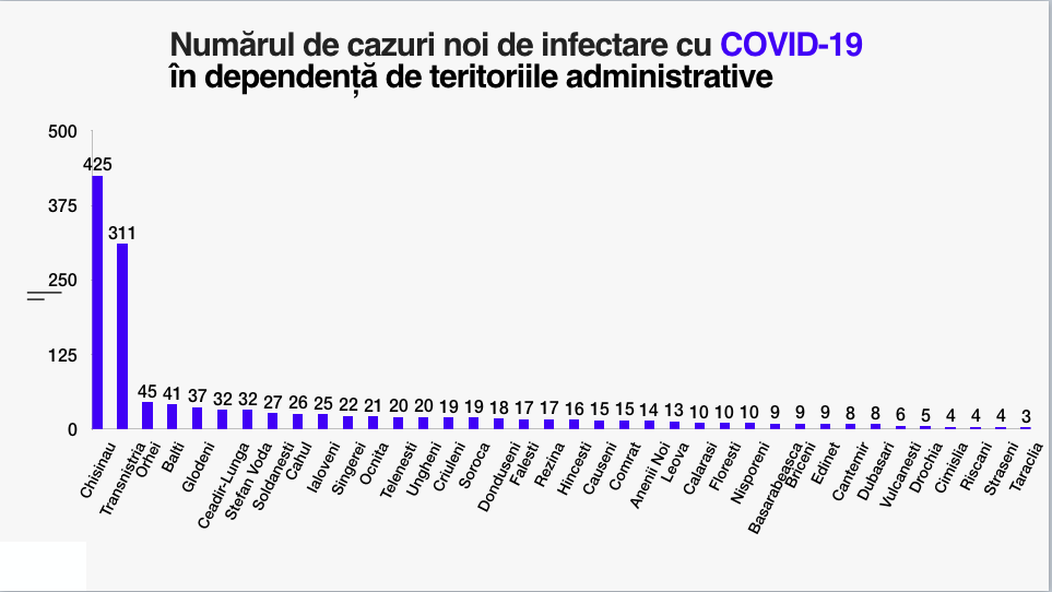 Din numărul total de cazuri, 35 sunt în rândul lucrătorilor medicali: (5-medici, 21-asistenți medicali, 9-personal auxiliar). Printre cei infectați sunt și 18 soroceni.
