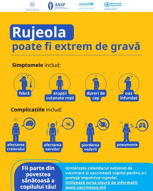 Agenția Națională pentru Sănătate Publică (ANSP) continuă monitorizarea situației epidemiologice prin rujeolă la nivel național. În contextul menținerii riscului de răspândire a virusului, specialiștii îndeamnă populația la vaccinare, aceasta fiind singura măsură eficientă de prevenire a îmbolnăvirii și a complicațiilor grave.