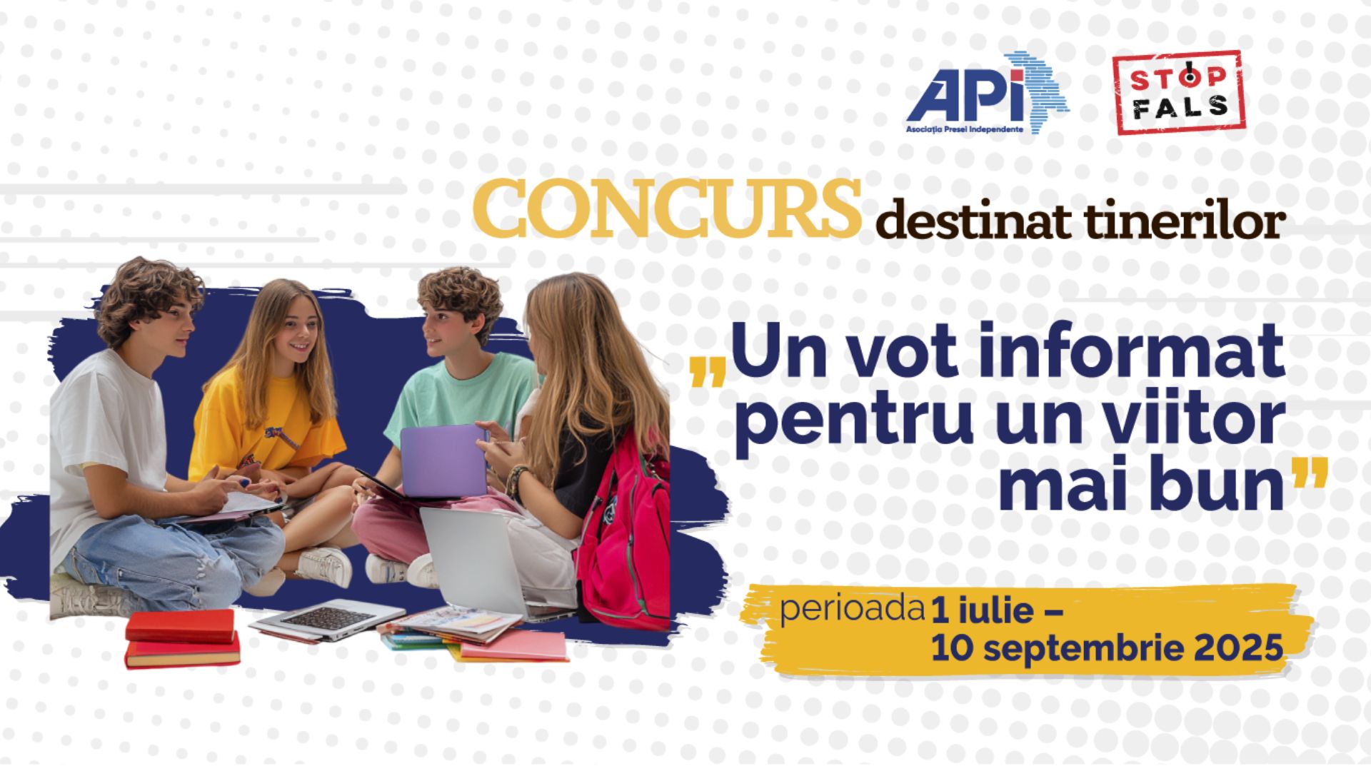 Asociația Presei Independente (API) desfășoară concursul de creație „Un vot informat pentru un viitor mai bun”, destinat tinerilor care locuiesc în Regiunea de dezvoltare Nord și în raionul Ungheni, care au împlinit sau urmează să împlinească vârsta de 18 ani și vor vota pentru prima dată la alegerile parlamentare din 28 septembrie 2025.