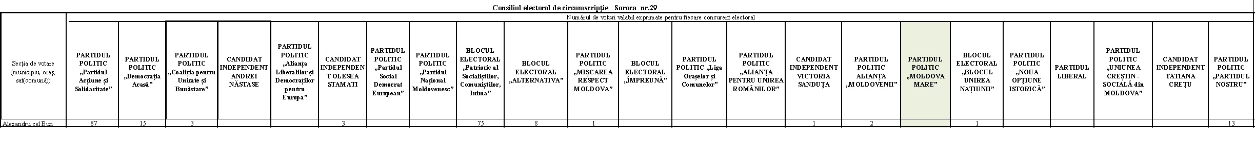 Sursa informațiilor: Consiliul electoral de Circumscripţie Soroca nr. 29
