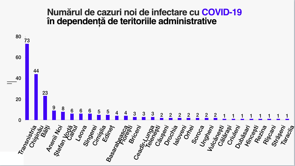 După efectuarea a 5963 de teste, au fost confirmate alte 224 de cazuri noi de infectare cu COVID-19, inclusiv 2 cazuri în raionul Soroca. Astfel, bilanțul cazurilor de COVID-19 a ajuns la 253.173 Din numărul total de cazuri, patru sunt în rândul lucrătorilor medicali: (3-medic, 1-asistenți medicali, 0-personal auxiliar).