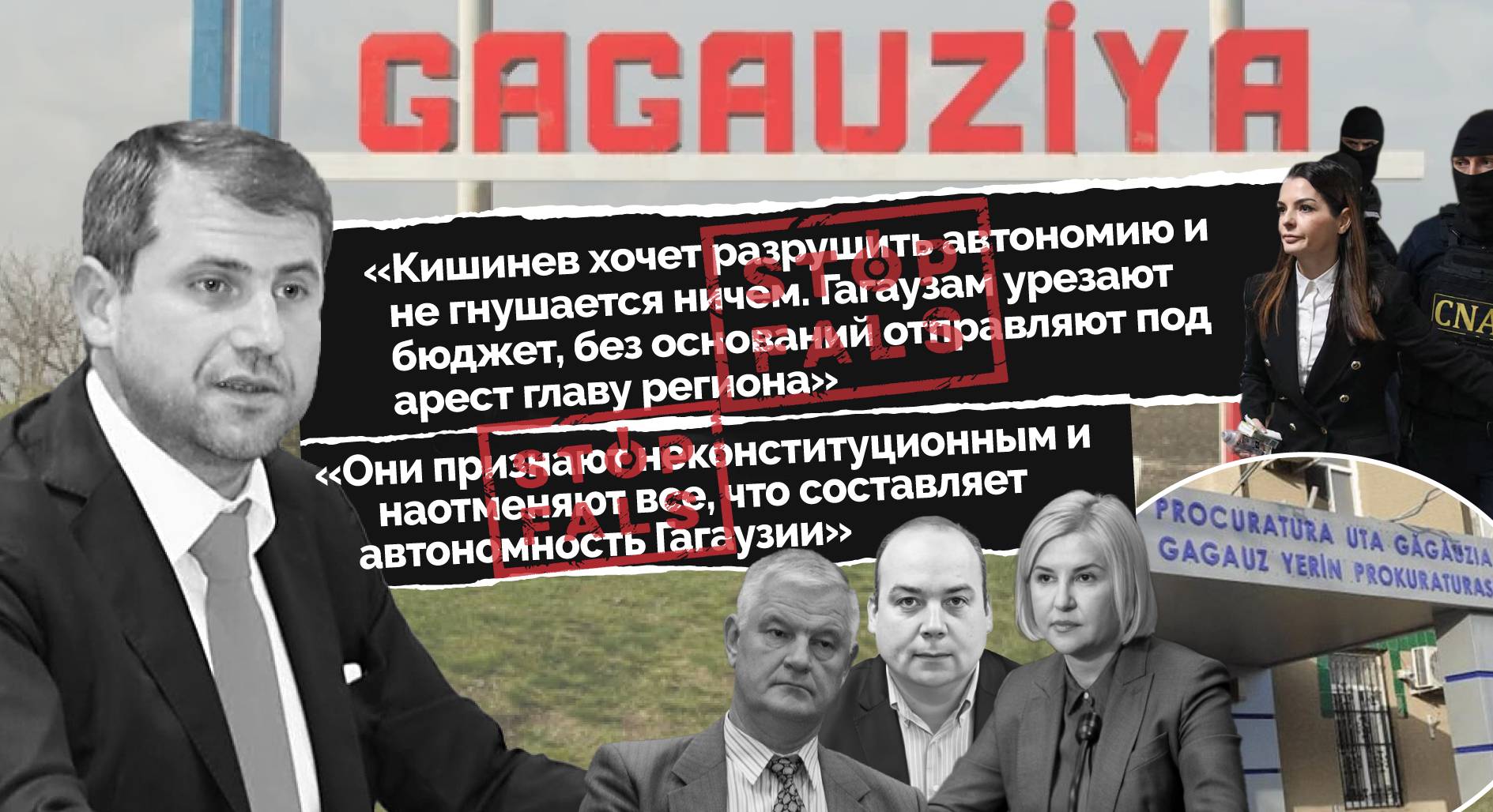 Paginile Комсомольская правда в Молдове, Gagauz Media, Primul în Moldova au scris pe Facebook că „a fost lansată nimicirea Găgăuziei” (în original: «дан старт уничтожению Гагаузии»), că „regimul Sandu atentează asupra statutului de autonomie al Găgăuziei” (în original: «сандовский режим покушается на автономный статус Гагаузии») și că „Chișinăul vrea să distrugă autonomia” (în original: «Кишинев хочет разрушить автономию»). Și aceste pagini au făcut referire la Șor. Peste 50 de conturi de Facebook fără poze și nume de persoane reale au distribuit aceeași postare cu afirmația că „regimul atentează asupra statutului de autonomie al Găgăuziei” (în original: «режим покушается на автономный статус Гагаузии»).