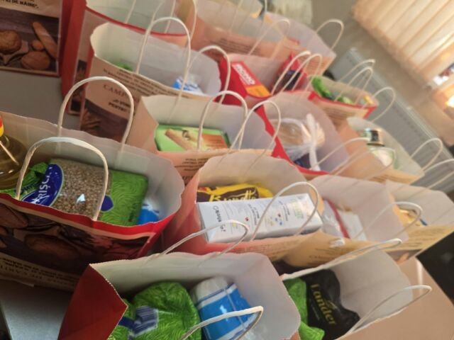 După ce donațiile au fost colectate, Tinerii au pregătit pungile, decorându-le cu grijă cu logoul campaniei, pentru a lăsa o amintire frumoasă în casele beneficiarilor despre acest act de generozitate și solidaritate.