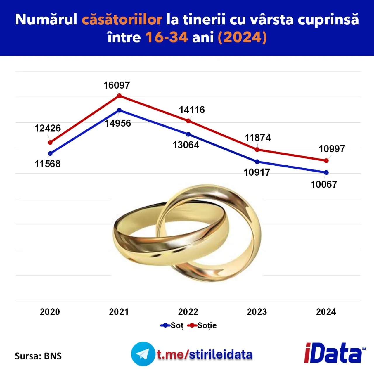 Dacă în 2021 se înregistra un vârf de aproape 16.100 de mirese și 14.900 de miri, în 2024 cifrele au atins cel mai redus nivel din perioada analizată – 10.100 de bărbați și 11.000 de femei. Specialiștii pun această tendință pe seama migrației, schimbărilor socio-economice și amânării momentului căsătoriei pentru vârste mai înaintate, transmite stiri.md