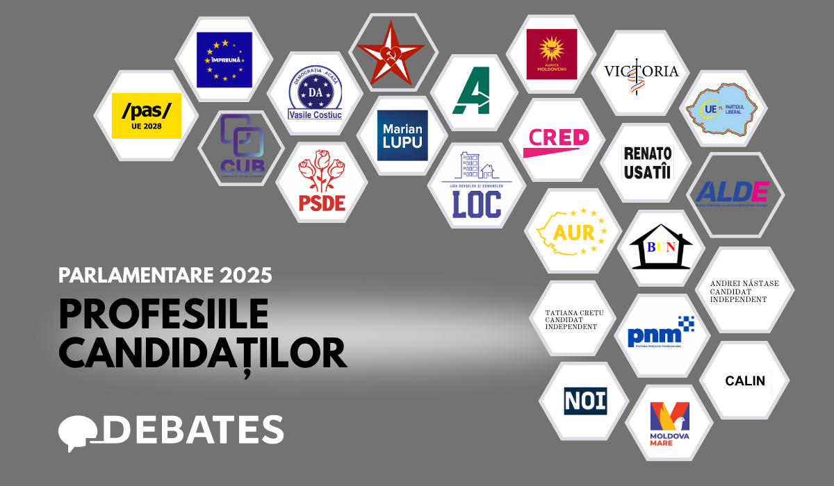 Aproape 50% dintre cei care vor să devină deputați sunt de profesie juriști, profesori sau economiști, scrie blog.debates.md. În același timp, printre doritorii de a ocupa un fotoliu în Parlament sunt și tractoriști, jurnaliști, actori, lăcătuși auto, frizeri, bucătari, chelneri, șoferi, animatori sau studenți care abia însușesc o profesie. Totodată, cel mai vârstnic candidat la funcția de deputat are 87 de ani, iar cel mai tânăr – 18. Sunt câteva dintre curiozitățile pe care le-am desprins după ce am analizat studiile, locurile de muncă, dar și vârsta celor înregistrați la alegerile parlamentare sin 28 septembrie 2025 (15 partide politice, 4 blocuri electorale, 4 candidați independenți). În total, 1416 persoane își doresc să devină deputați. În ce formațiune sunt cei mai mulți juriști sau economiști, care partid are cei mai mulți pensionari și unde-s cei mai mulți studenți, unde găsim candidați dintr-o varietate largă de profesii, de la barman și lăcătuș auto până la avocați sau profesori, dar și care este partidul unde sunt cei mai mulți candidați angajați oficial la un loc de muncă, aflați din analiza de mai jos. Menționăm că toate informațiile au fost selectate de pe site-ul Comisiei Electorale Centrale.