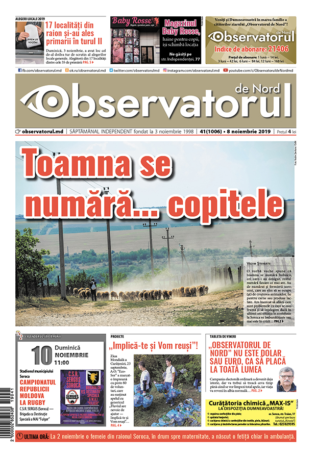 Abonați Observatorul de Nord în toate oficiile poștale din raionul Soroca și din țară.
