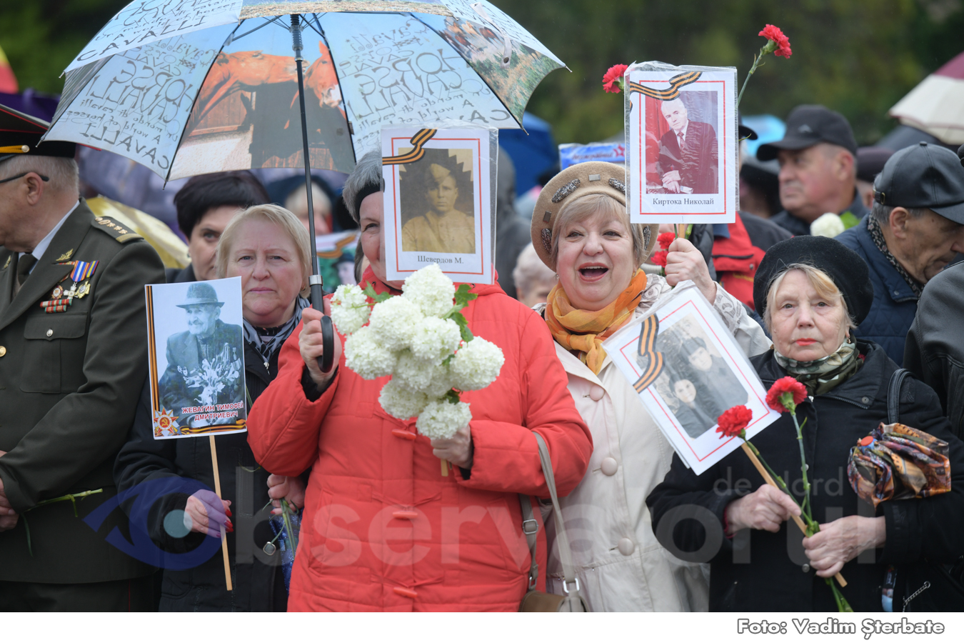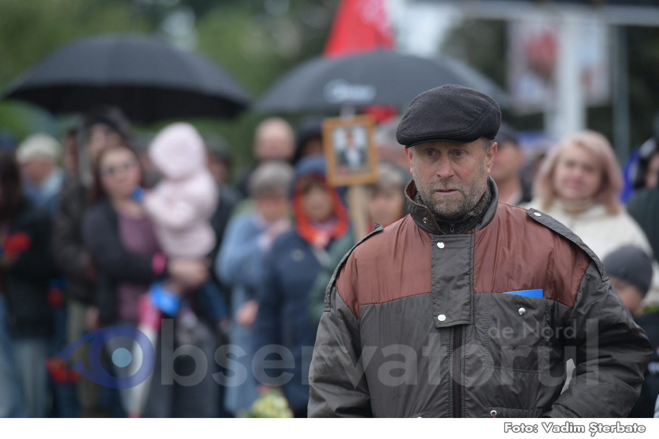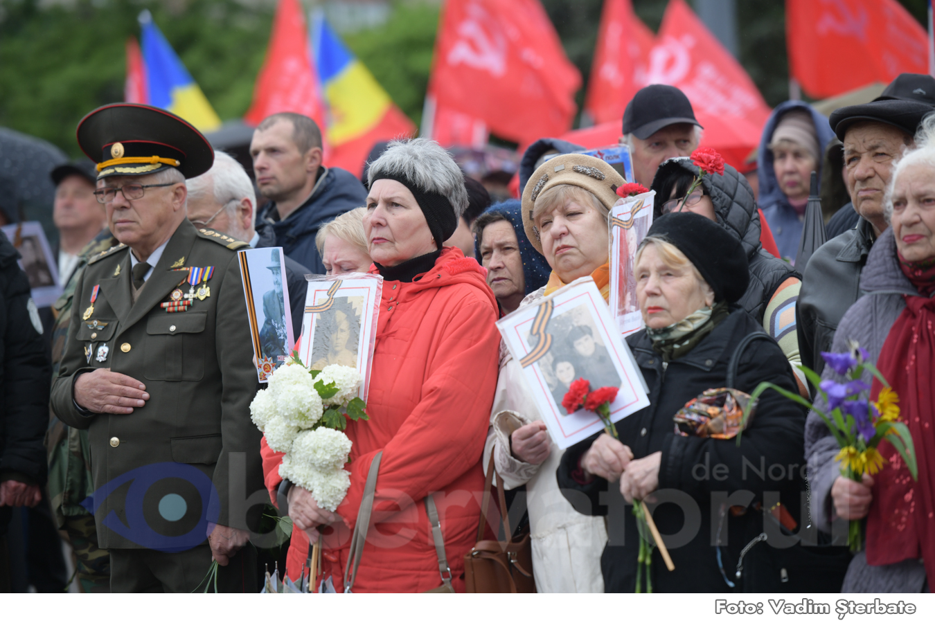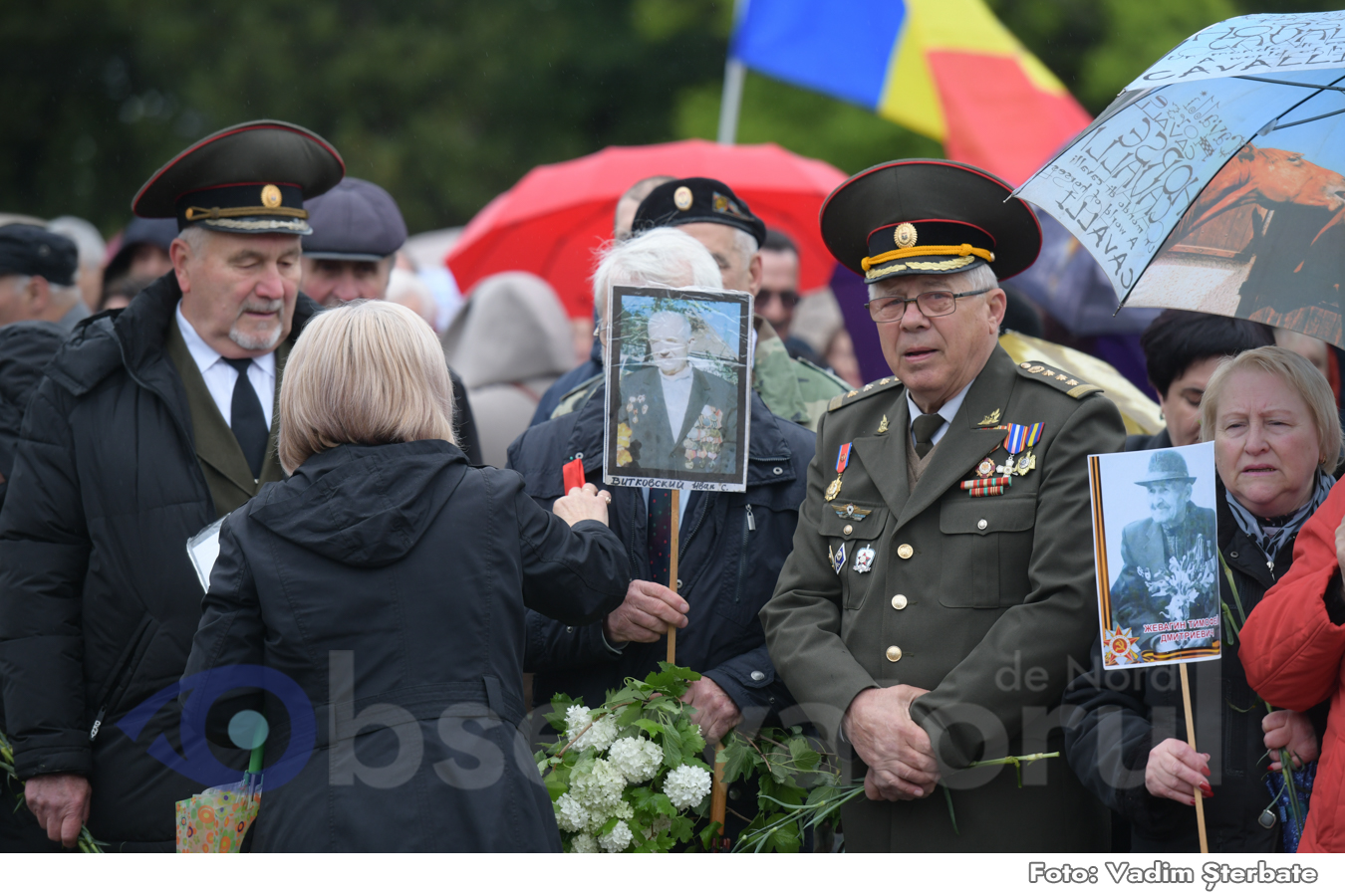 A urmat imnul Republicii Moldova, apoi discursurile celor urcați pe scenă, poezii și cântece dedicate păcii. Majoritatea celor prezenți au respectat decizia autorităților Republicii Moldova, care interzice simbolurile războiului, cu excepția a câtorva politicieni. Unii dintre cei care anterior oricum ieșeau cu panglica negru-portocaliu la piept, de această dată au schimbat-o pe una roșie. Cei căzuți în cel de-al Doilea Război Mondial au fost cinstiți de preoții conduși de ÎPS Ioan, fiind organizată o scurtă slujbă de pomenire.