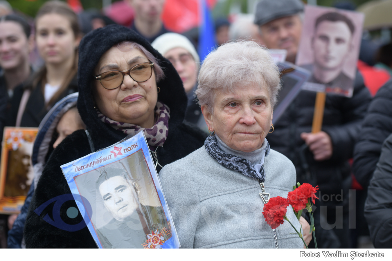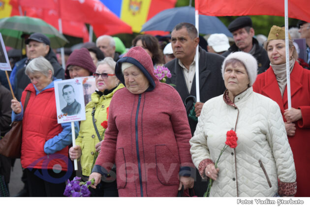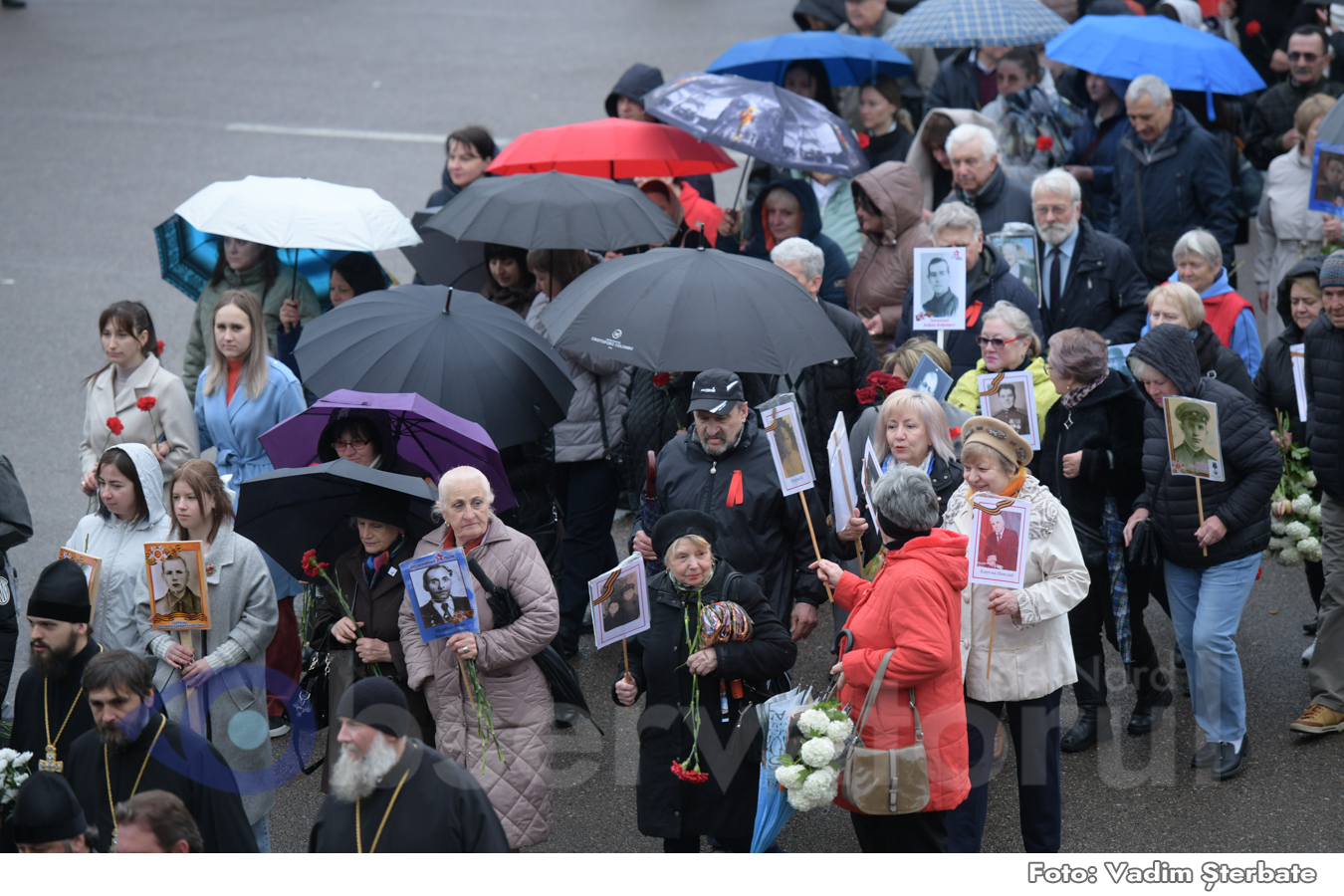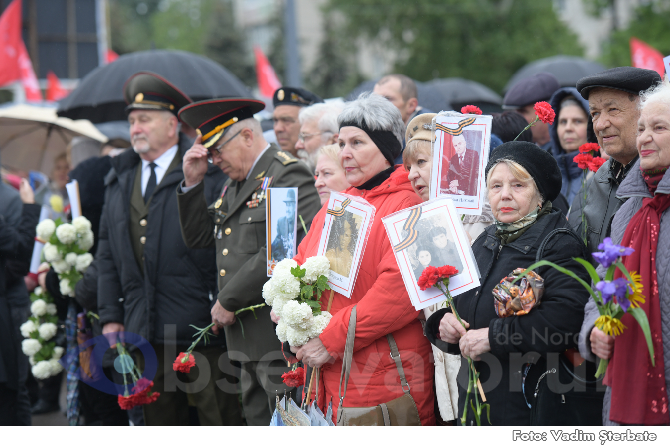 A urmat imnul Republicii Moldova, apoi discursurile celor urcați pe scenă, poezii și cântece dedicate păcii. Majoritatea celor prezenți au respectat decizia autorităților Republicii Moldova, care interzice simbolurile războiului, cu excepția a câtorva politicieni. Unii dintre cei care anterior oricum ieșeau cu panglica negru-portocaliu la piept, de această dată au schimbat-o pe una roșie. Cei căzuți în cel de-al Doilea Război Mondial au fost cinstiți de preoții conduși de ÎPS Ioan, fiind organizată o scurtă slujbă de pomenire.