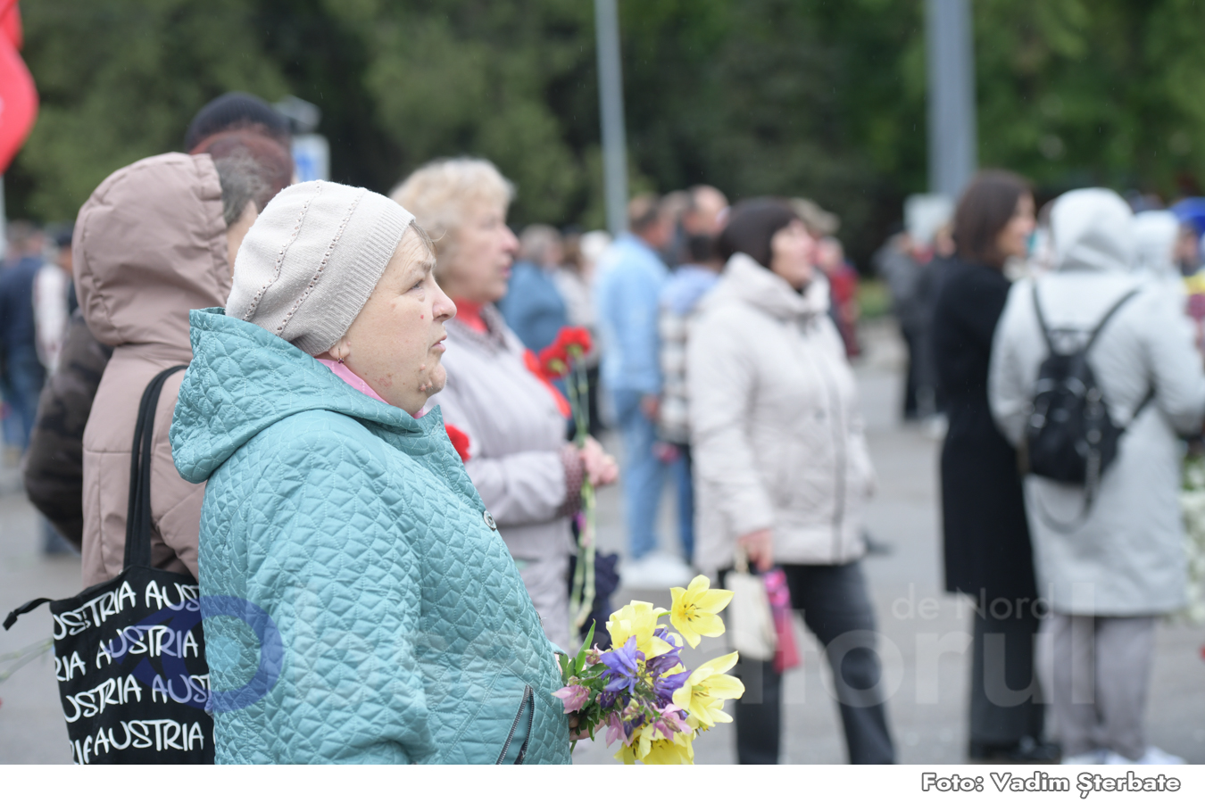 În piață mirosea a terci ostășesc, cu care cei prezenți au fost serviți la finalul evenimentului. Ca de obicei „Focul veșnic” a fost aprins pentru câteva ore, iar unii dintre cei prezenți nu au mai așteptat depunerea solemnă a florilor și au așezat cu grijă lalele, garoafele și crenguțele de liliac culese sau cumpărate.