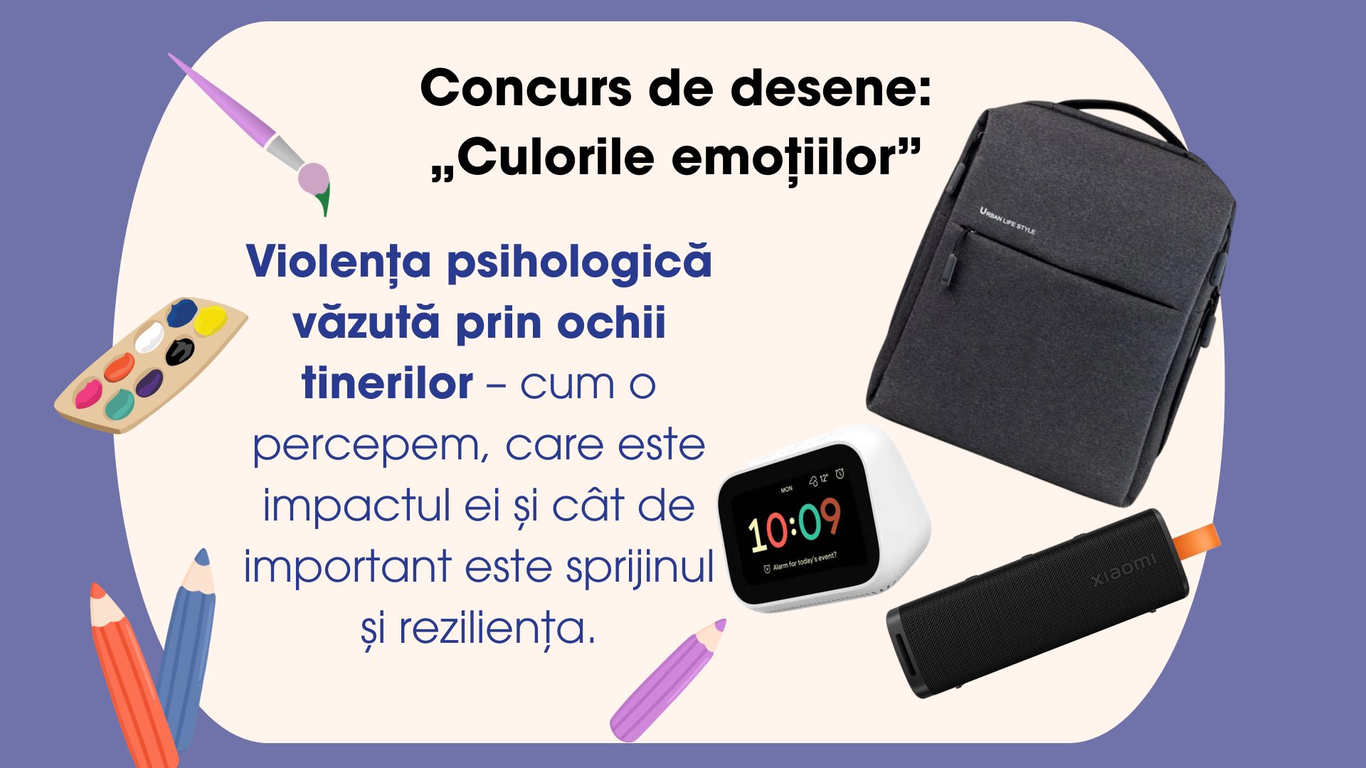 Asociația Obștească CRTF DACIA anunță lansarea concursului de desene „Culorile emoțiilor”, dedicat tinerilor din raionul Soroca cu vârsta cuprinsă între 14 și 25 de ani. Tema ediției din acest an este „Violența psihologică văzută prin ochii tinerilor”, iar participanții sunt invitați să exprime prin culori și forme modul în care percep acest fenomen, impactul lui asupra vieții și importanța sprijinului și a rezilienței.