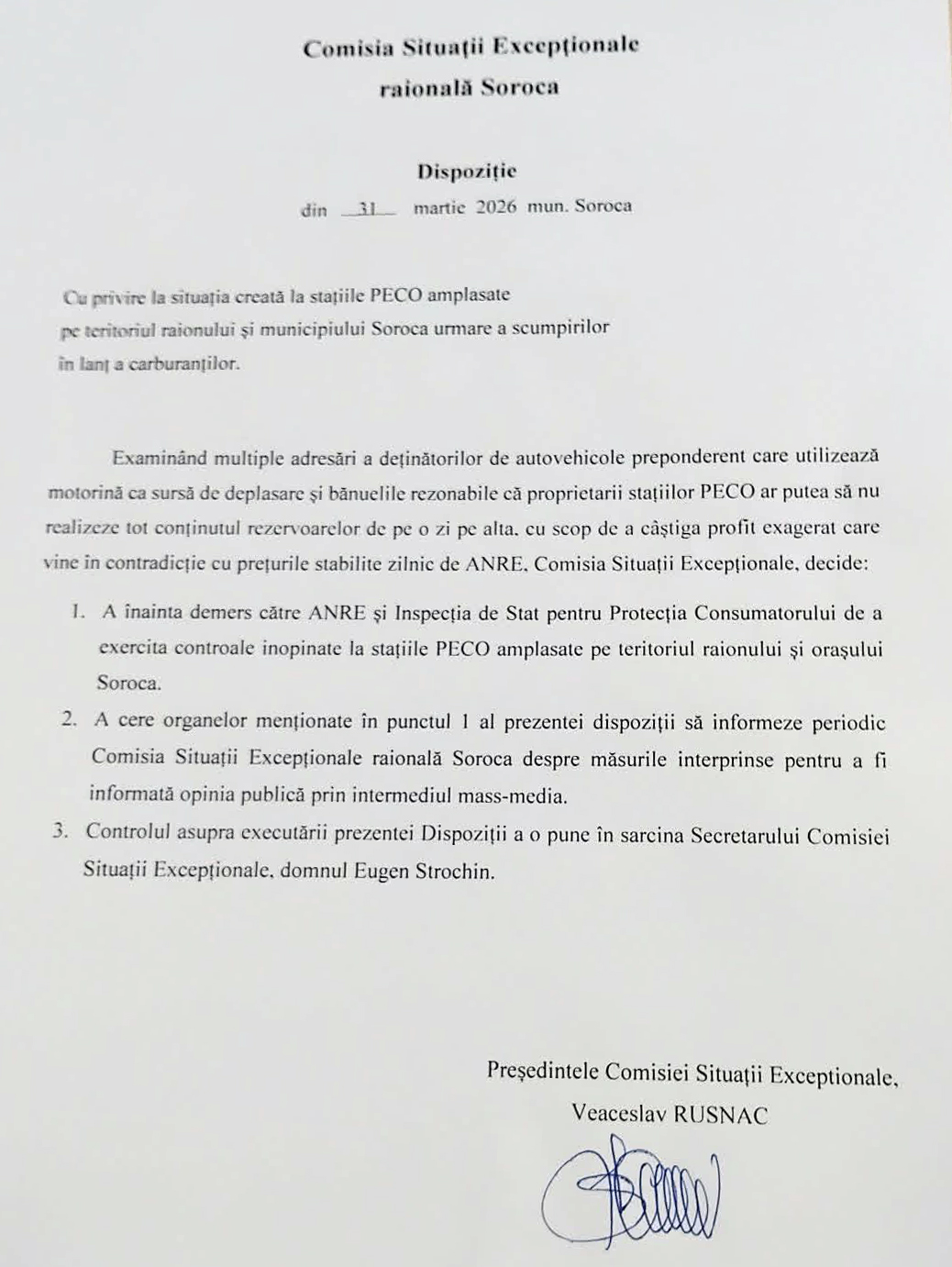 La ședința ordinară a Comisiei pentru Situații Excepționale a raionului Soroca de astăzi a fost analizată și creșterea prețurilor la carburanți. Suspiciunile privind practicile unor stații PECO determină autoritățile din Soroca să intervină. Comisia pentru Situații Excepționale raională a emis o dispoziție prin care solicită verificări inopinate la benzinăriile din municipiu și din întreg raionul.