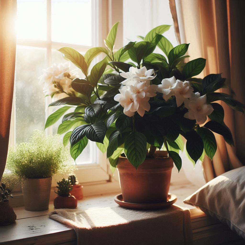 Gardenia are flori mari și stratificate, iar parfumul său are un efect de relaxare asupra sistemului nervos, ajutând la îmbunătățirea somnului. Planta necesită un sol acid, cu pH 4,5-5,5. Gardenia nu suportă temperaturile scăzute sau variațiile bruște de temperatură. Este recomandat să pulverizați frunzele zilnic înainte de înflorire și să mențineți o umiditate ridicată în cameră.