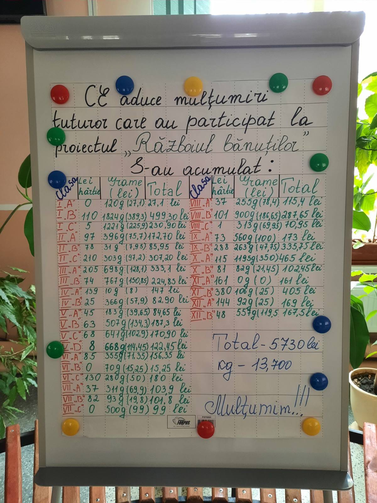 Consiliul de Elevi al Liceul Teoretic „Ion Creangă”, le-a mulțumit tuturor participanților pentru suma de bănuți acumulată. Anul acesta s-au adunat aproximativ 14 kg de bănuți, suma totală constituind 5 730 MDL. Acești bani au fost strânși cu ajutorul tuturor claselor, începând cu elevi ai claselor primare și finisând cu clasele a XII-a. (Valeria PRISACARI)