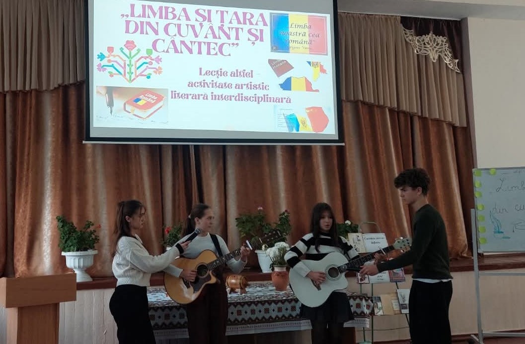 Cântecul „Cât trăim pe-acest pământ”, interpretat de elevii claselor VI „C”, a deschis activitatea printr-o atmosferă plină de emoție, după care a urmat un șir de momente artistice, precum „Limba Noastră” de Alexei Mateevici, „Despre limba română” de Nichita Stănescu, „În limba ta” de Grigore Vieru, ,,Doina” de George Coșbuc, „Cerul tău, Moldovă” de Dumitru Matcovschi, și cântece interpretate de către elevi cu grație și mândrie națională, precum „Eminescu” , „Pentru ea”, „Nebun de alb”, „Răsai”, „O serenadă”.