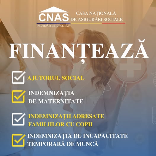 Casa Națională de Asigurări Sociale informează că a fost finanțată plata ajutorului social, indemnizațiilor unice la naștere, indemnizațiilor pentru creșterea/îngrijirea copilului, indemnizațiilor pentru creșterea copiilor gemeni, indemnizațiilor paternale, indemnizațiilor de maternitate și indemnizațiile pentru incapacitate temporară de muncă în valoare totală de 185,32 milioane lei.