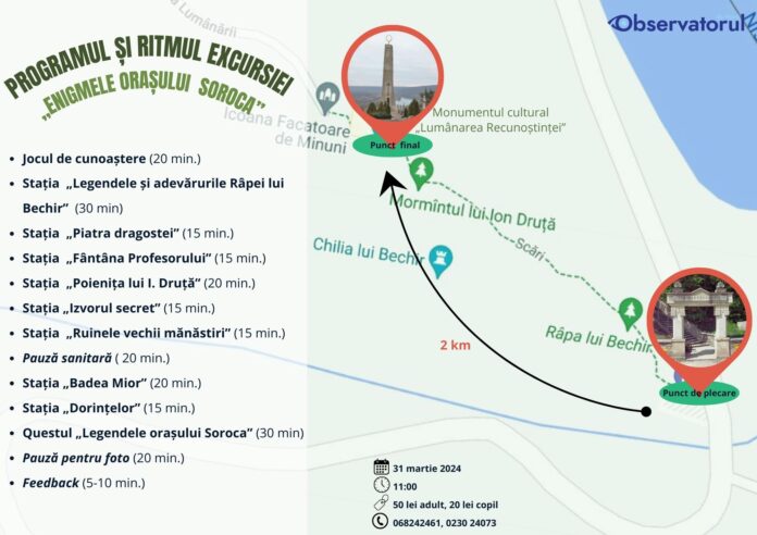 Ești gata să descoperi secretele fascinante ale orașului nostru? Te invităm să te alături nouă într-un tur pietonal captivant „Enigmele orașului Soroca”, dedicat istoriei și culturii orașului Soroca. În luna Mărțișorului, ai ocazia să inviți mama, bunica sau sora la o mică excursie. Este o oportunitate minunată de a petrece timpul împreună și de a crea amintiri de neuitat. Copiii sunt bineveniți să se alăture distracției, dar trebuie să fie însoțiți de un adult.