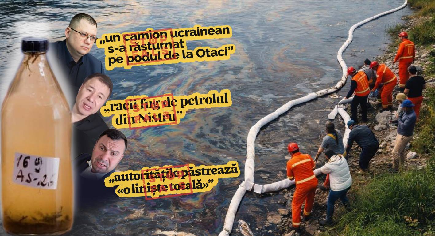 Criza ecologică cauzată de deversările de substanțe petroliere în râul Nistru a generat o mulțime de speculații, manipulări și falsuri în spațiul public. Politicieni și canale de social media au lansat dezinformări despre „un camion ucrainean care s-a răsturnat pe podul de la Otaci”, raci care „fug de petrolul din Nistru”, „liniștea totală” a autorităților sau mesaje alarmiste pe Viber. Zeci de surse pro-Kremlin pun constant la îndoială și ridiculizează declarațiile autorităților, dar și versiunea oficială a cauzei deversărilor – atacul armatei ruse asupra centralei hidroelectrice de la Novodnistrovsk, situată pe Nistru, la câțiva kilometri de hotarul cu R. Moldova.