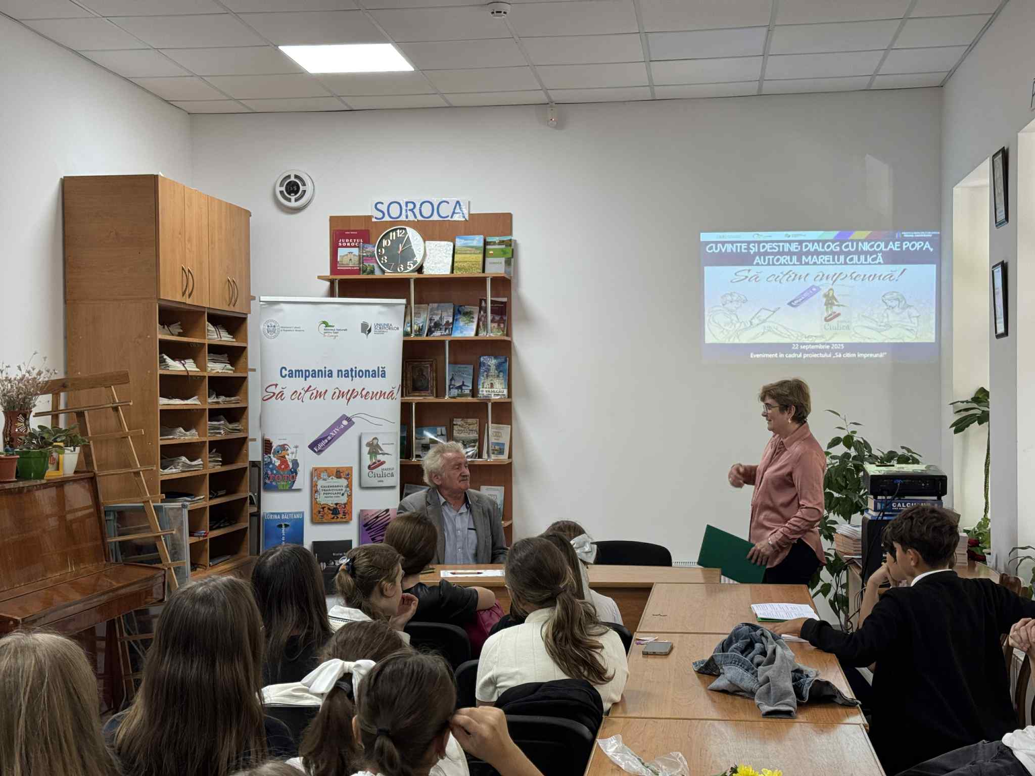 Ieri, 22 septembrie 2025, elevii IP Liceul Teoretic „Constantin Stere”, ghidați de doamna profesoară Aliona Florea, dar și cu alți invitați pasionați de literatură, au avut bucuria de a-l întâlni pe cunoscutul scriitor Nicolae Popa. Evenimentul a făcut parte din Campania Națională „Să citim împreună” și a oferit copiilor ocazia să descopere universul miniromanului Marele Ciulică, să adreseze întrebări și să afle secrete despre procesul creativ al autorului.