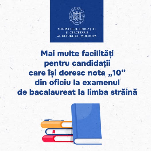 Ministerul Educației și Cercetării, împreună cu Agenția Națională pentru Curriculum și Evaluare, au actualizat metodologia de acordare a notei „10” din oficiu la proba de limbă străină din cadrul examenului național de bacalaureat.