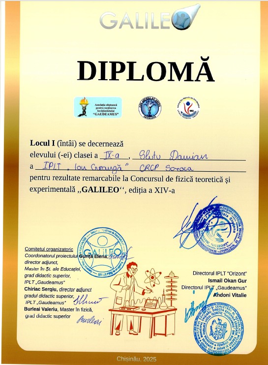 Două locuri I, două locuri III și patru mențiuni au obținut tinerii fizicieni soroceni, în cadrul concursului republican „Galileo”