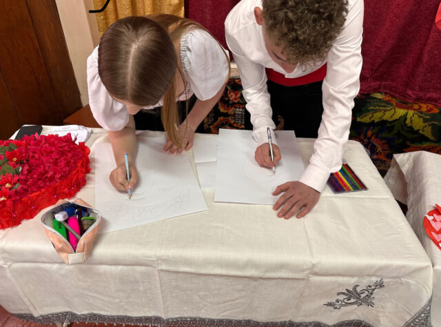 Din acel moment, probele au continuat contra timp. Portretul reciproc a adus zâmbete și concentrare. Creioanele au surprins trăsături, expresii și poate chiar emoții ascunse, iar la final desenele au fost oferite în dar, într-un gest care a transformat portretele într-o amintire.