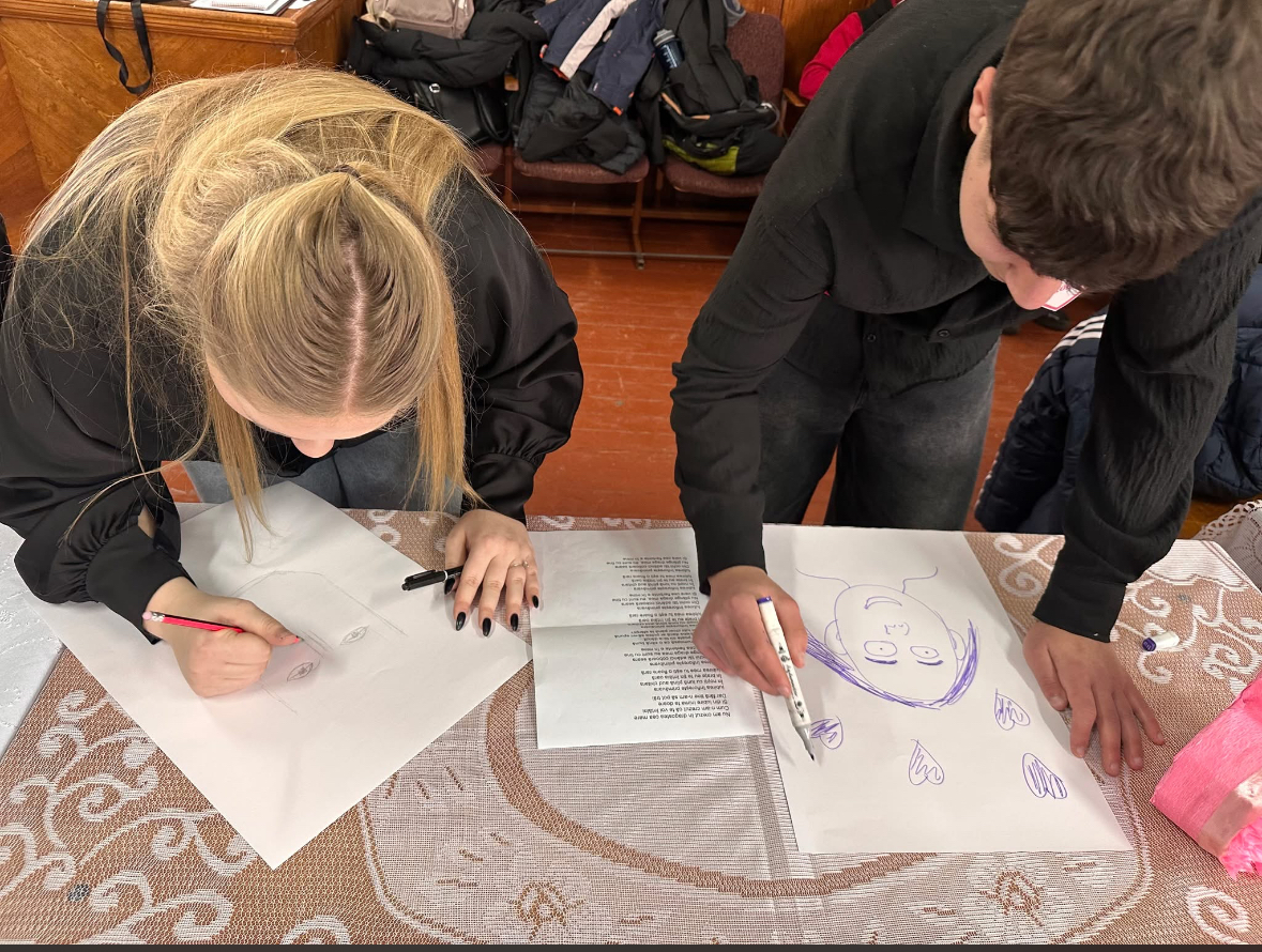 Din acel moment, probele au continuat contra timp. Portretul reciproc a adus zâmbete și concentrare. Creioanele au surprins trăsături, expresii și poate chiar emoții ascunse, iar la final desenele au fost oferite în dar, într-un gest care a transformat portretele într-o amintire.