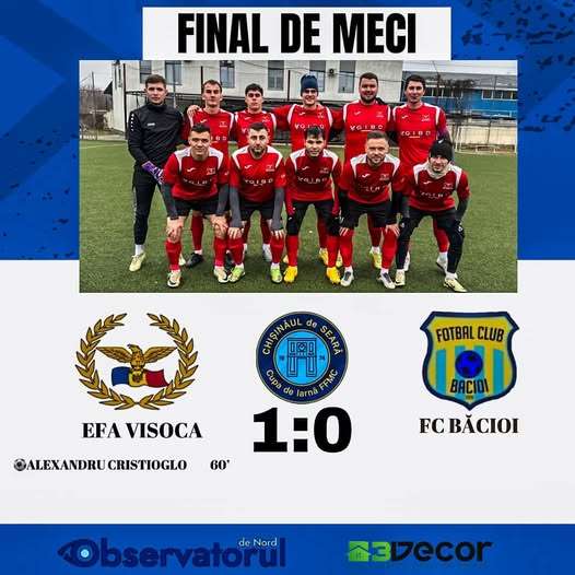Să mai menționăm că, în perioada 31 ianuarie – 2 februarie, în vederea pregătirii pentru play-off-ul ligii naționale, echipa U 13, a clubului EFA s-a aflat într-un mic cantonament în orașul Ocnița, unde a desfășurat trei sesiuni de antrenament și a disputat două meciuri amicale, obținând următoarele rezultate: EFA Visoca U13 – SS Ocnița: 1-1 și EFA Visoca U13- Basarabia, Lipcani: 5-0.