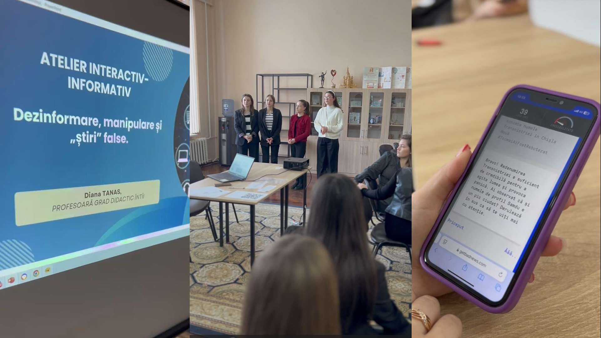 Elevii de la specialitățile Jurisprudență și Servicii administrative și de secretariat din cadrul Colegiului „Mihai Eminescu” din Soroca, coordonați de profesoara Diana Tanas, au participat la un atelier informativ-interactiv dedicat fenomenului dezinformării, manipulării și „știrilor false”.