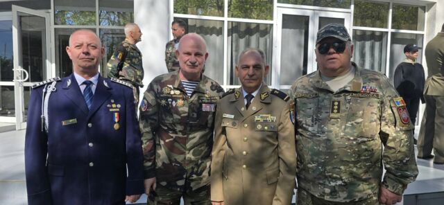 Marius Apostol, președintele Asociației Militarilor Veterani și Veteranilor cu Dizabilități din România, însoțit de Florin Tutunaru, Ion Maican, Ion Oprișan, Valeriu Boată;