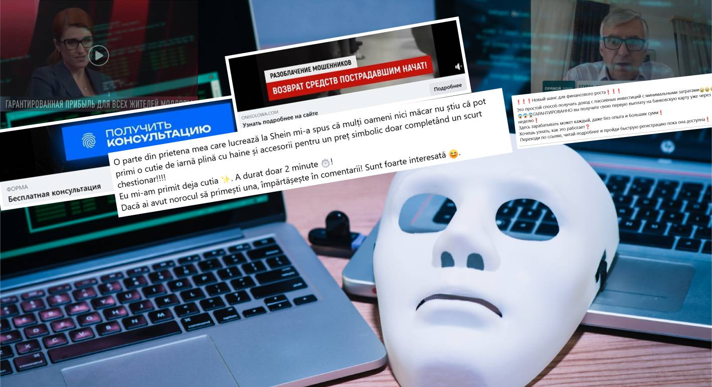În 2025, pe rețelele sociale continuă să apară numeroase escrocherii, autorii cărora le propun utilizatorilor câștiguri din investiții și trading, oferte de recuperare a banilor sustrași prin escrocherie, etc. Am analizat anunțurile de acest gen de pe Facebook și Instagram, rețele aparținând companiei Meta, și vă relatăm despre cum arată anunțurile escrocilor și cum funcționează schemele frauduloase, dar și vă oferim sfaturi împotriva fraudelor online.