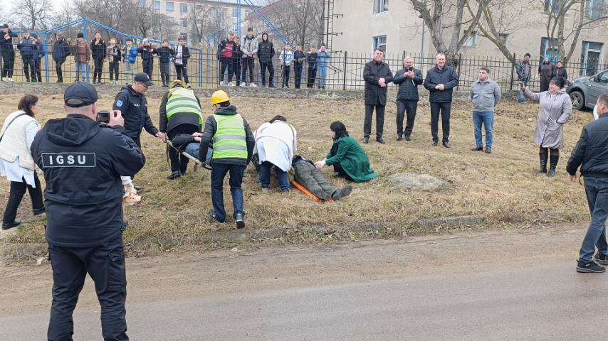 Prima etapă a avut loc la Gimnaziul Racovăț, unde populația a primit măști antigaz, pentru protecție în caz de atac chimic. Apoi, echipele de intervenție au simulat salvarea victimelor unui accident rutier și acordarea primului ajutor.