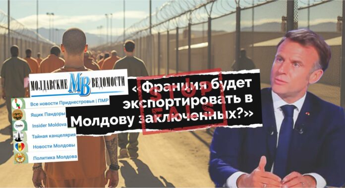 La 18 mai, site-ul publicației Молдавские Ведомости a plasat un articol cu titlul „Franța va exporta deținuți în Moldova?”, în care se spune: „Franța examinează la modul serios posibilitatea de a trimite deținuții străini din închisorile sale suprapopulate în penitenciarele Europei de Est. (…) Anterior, președintele Emmanuel Macron a susținut această idee. (…) Dacă Moldova va accepta să devină izolatorul Europei, asta înseamnă că decizia deja este luată nu la Chișinău, ci în staffurile globaliștilor”. Autorul a comentat, de asemenea: „Globaliștii nu se mai ascund. Ei nu au nevoie de Moldova, ci de un teritoriu care poate fi condus de la distanță și care este gata să tacă în schimbul granturilor și imitației apartenenței la «familia europeană»” (în original: «Франция всерьез рассматривает возможность отправлять иностранных заключенных из своих переполненных тюрем в пенитенциары Восточной Европы. (…) Ранее идею поддержал президент Эммануэль Макрон. (…) Если Молдова соглашается стать европейским изолятором, значит, решение уже принято не в Кишиневе, а в штабах глобалистов»).