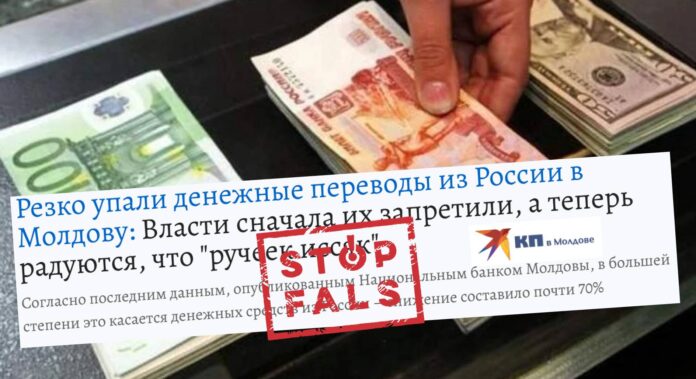 La începutul lunii ianuarie, site-ul publicației „Комсомольская Правда в Молдове” a publicat o știre în care afirmă că transferurile de bani din Federația Rusă au scăzut cu 70% în ultimul semestru al anului 2023, adăugând că autoritățile aproape că au interzis, inițial, aceste transferuri, „iar acum se bucură că izvorul a secat”. Această afirmație este falsă. Transferurile bancare din Rusia nu au fost interzise niciodată, confirmă Banca Națională.