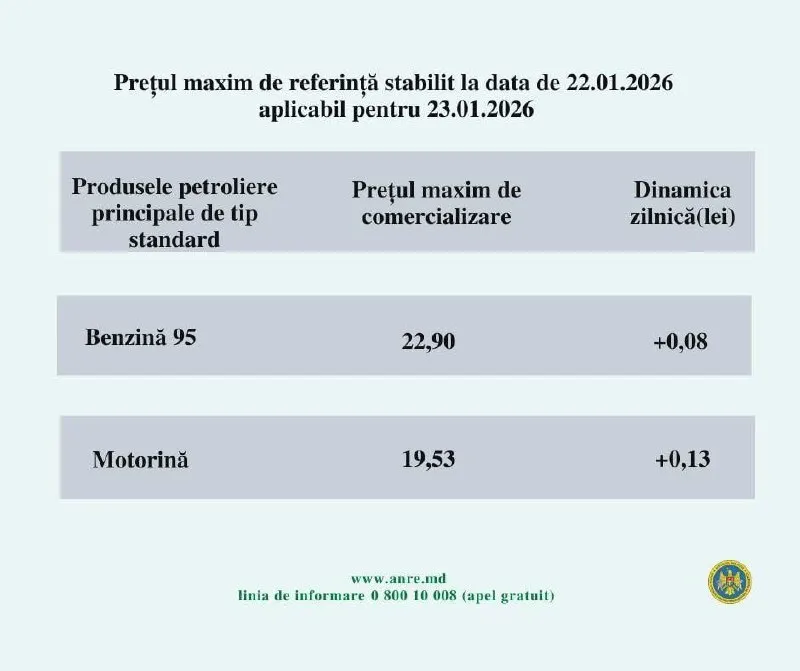 Agenția Națională pentru Reglementare în Energetică a anunțat noile prețuri pentru ziua de astăzi, 23 ianuarie 2026 – benzina se va scumpi cu 8 bani, iar motorina cu 13 bani.