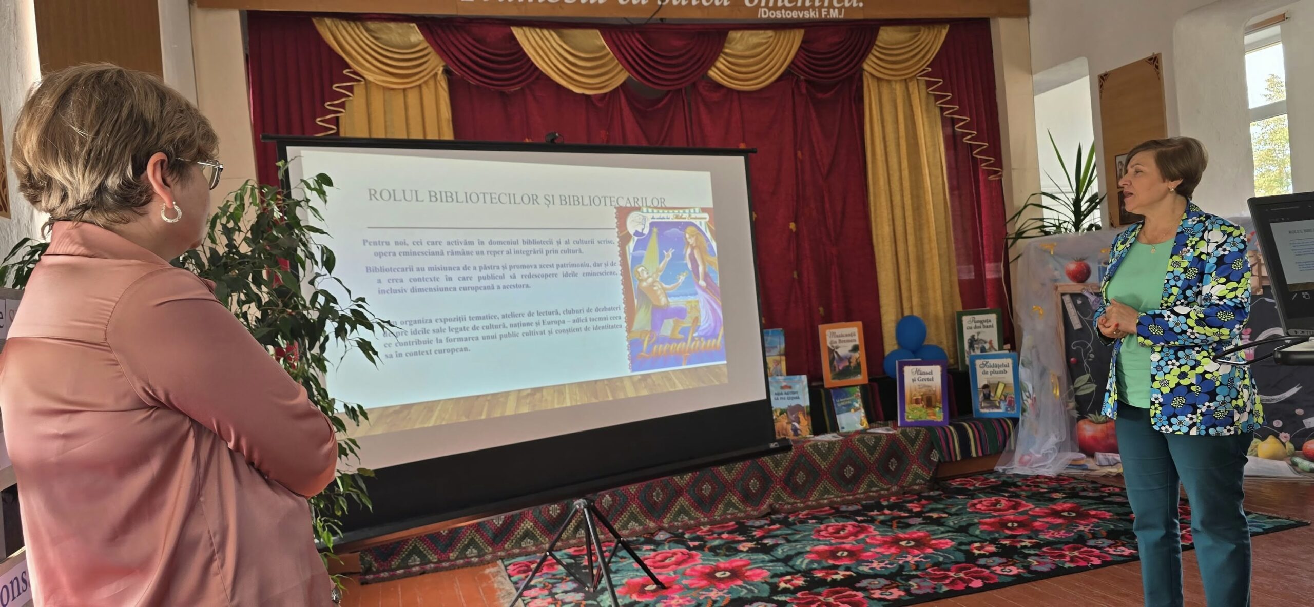 - Andriana Muntean, bibliotecar principal și coordonator de proiect, a prezentat conceptul și activitățile programului cultural-interactiv „Cartea care unește – punți culturale spre valorile europene”, evidențiind misiunea bibliotecilor de a crea spații de dialog și colaborare.