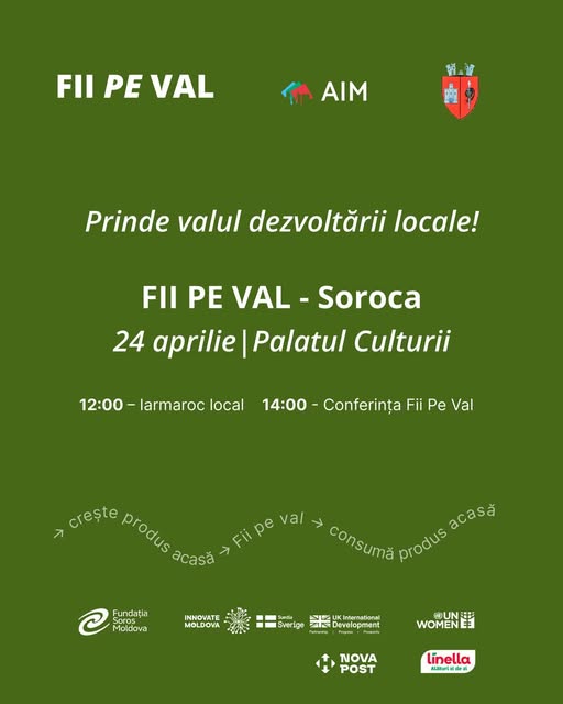 Pe data 24 aprilie, Palatul Culturii din Soroca devine locul unde ideile prind contur, iar inițiativele locale capătă vizibilitate. Campania „Fii pe Val”, organizată de @AIM în parteneriat cu Primăria Municipiului Soroca, aduce în prim-plan energia locală — antreprenori, producători și oameni care aleg, zi de zi, să susțină ceea ce se construiește acasă. Despre aceasta scrie Serviciul de presă al primăriei Soroca.