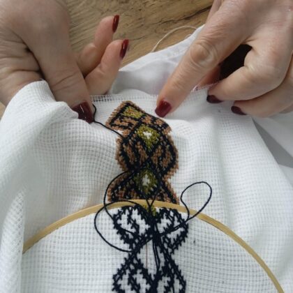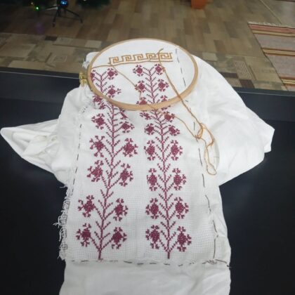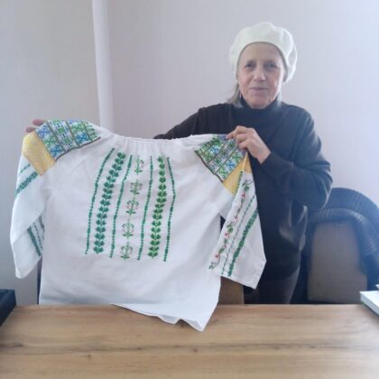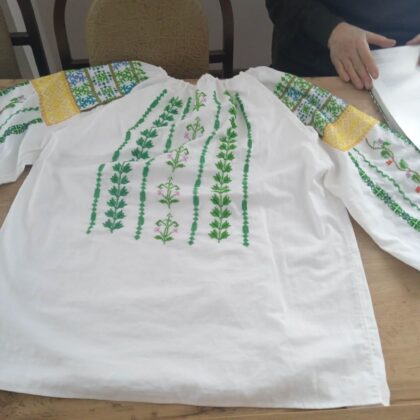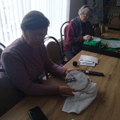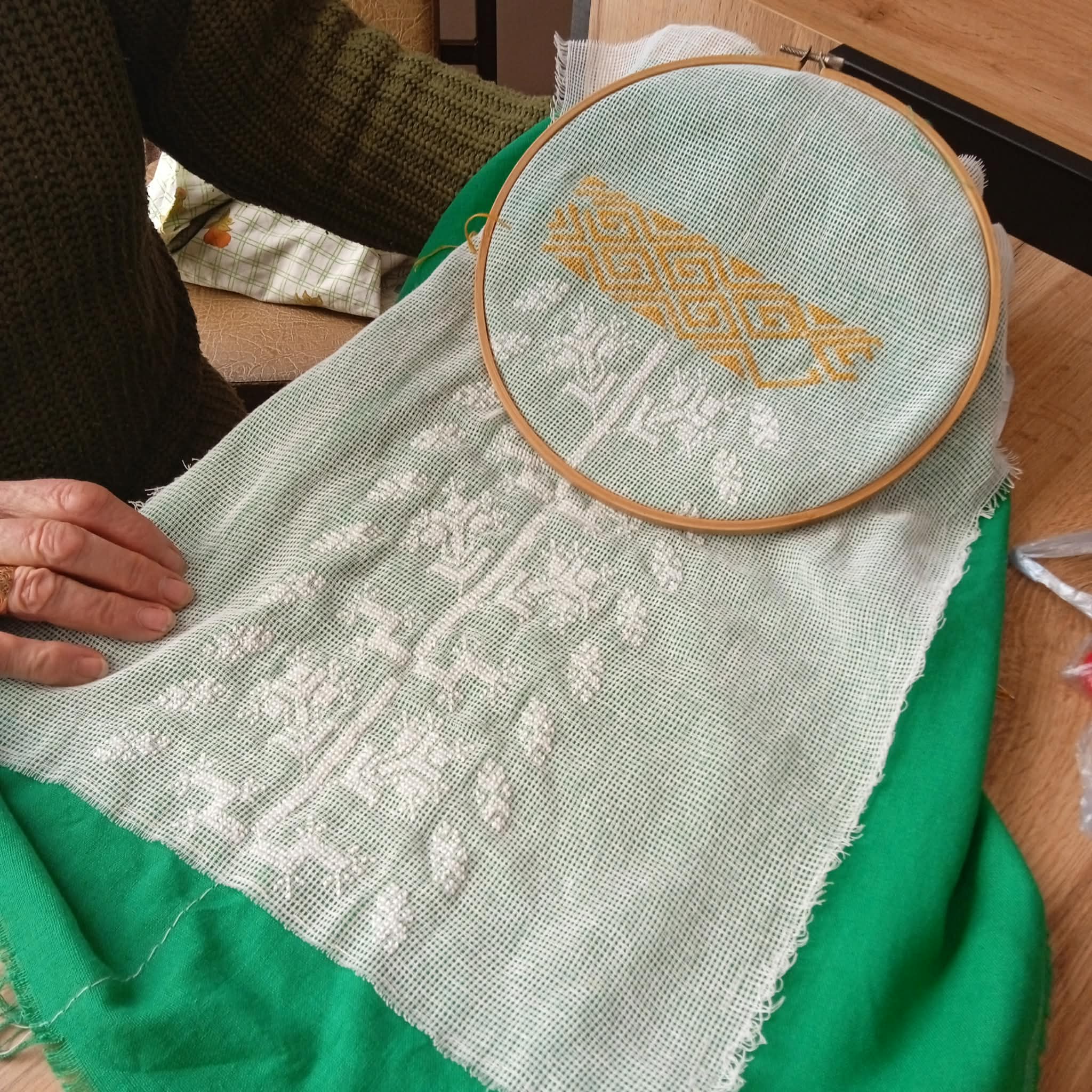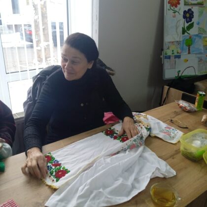 Întâlnirea a fost cu atât mai emoționantă cu cât grupul a avut un oaspete de suflet din România – doamna preoteasă Mioara Saftiuc, care a prezentat o ie aflată în lucru, impresionând prin măiestrie și respect față de simbolurile tradiționale. Alături de ea s-a aflat și nepoțelul Emanuel, sorocean de origine, care a adus un strop de copilărie și creativitate prin desenele sale. Imaginea celor două generații, unite de dragostea pentru frumos, a completat perfect spiritul șezătorii.