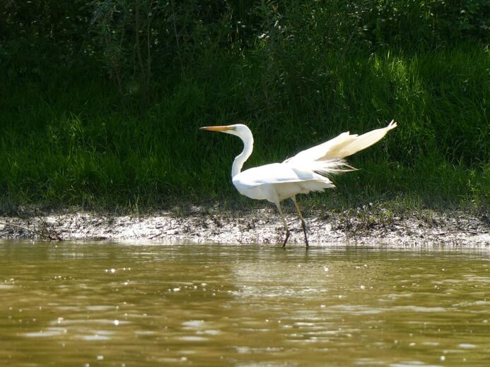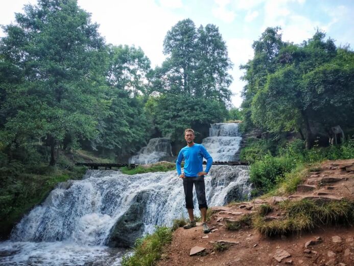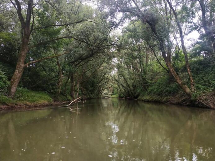 În drum spre locul în care râul se varsă în marea Neagră, bărbatul admiră natura, comunică cu oamenii pe care-i întâlnește și face notițe de călătorie pe care le publică pe rețele sociale.