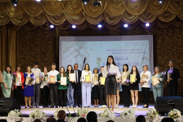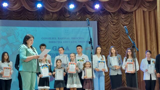 Festivitatea de premiere a fost dedicată aprecierii și recunoașterii elevilor din raionul Drochia, care au obținut performanțe excepționale la olimpiadele și concursurile școlare, la nivel raional și republican.