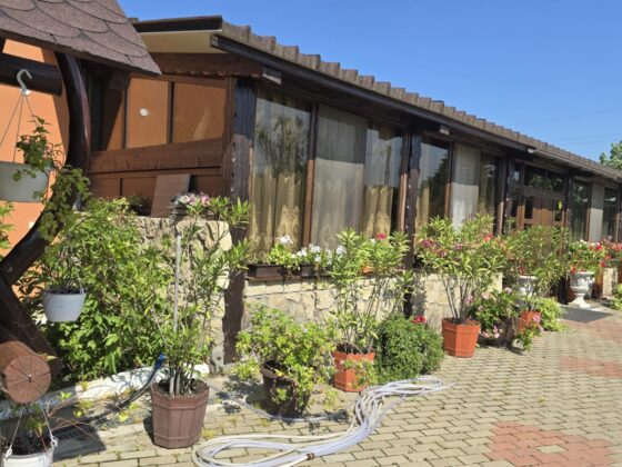 În fața noastră s-a deschis un colț de paradis, o curte bine îngrijită, cu multă verdeață, decorată cu mult rafinament, un edificiu cu geamuri panoramice – și toate vorbeau despre un bun gospodar, care și-a dorit să aducă Europa la el acasă. Și nu mă tem să spun acest lucru, fiind impresionată de armonia perfectă între stilul rustic și elemente moderniste, conferindu-i un aspect impecabil.