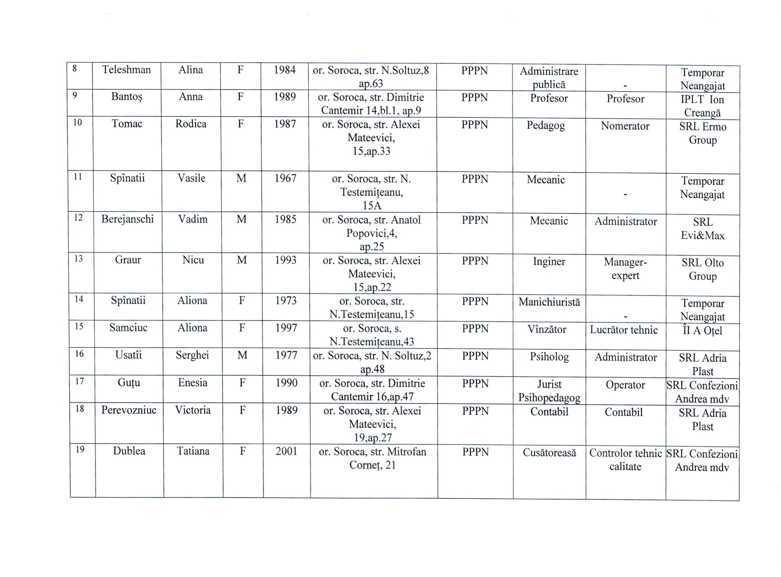 Sursa: Consiliul electoral al circumscripției electorale din municipiul Soroca 29/1.
