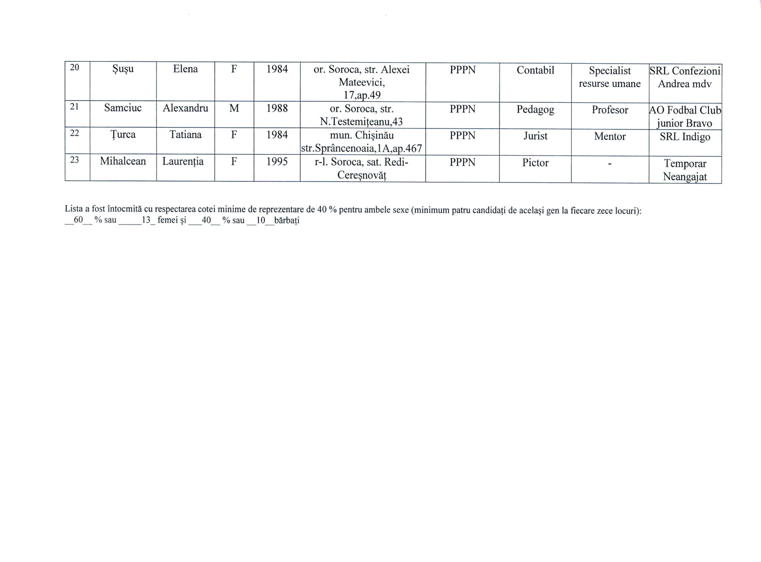 Iată lista candidaților PN pentru Consiliul Municipal Soroca