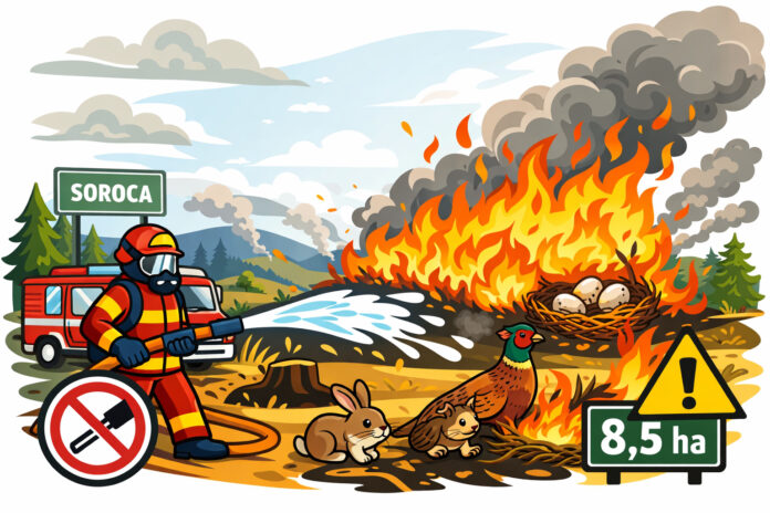 Arderile necontrolate de vegetație uscată continuă să creeze riscuri majore în raionul Soroca, unde, doar de la începutul anului, pompierii au intervenit de patru ori pentru stingerea incendiilor, iar peste 8,5 hectare de teren au fost deja afectate. Autoritățile avertizează că neglijența poate duce la pagube grave și cer respectarea strictă a regulilor de prevenire.