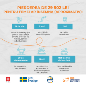 Nota informativă „(IN)EGALITATEA SALARIALĂ ÎNTRE FEMEI ȘI BĂRBAȚI ÎN MOLDOVA ANULUI 2024. Cât le costă pe femei diferențele în remunerare?” este realizată de către Centrul Parteneriat pentru Dezvoltare, în cadrul programului „Cetățeni activi, comunități prospere – Faza II”, implementat din resursele acordate de Elveția și Suedia. Opiniile exprimate aparțin autorilor și nu reflectă neapărat punctul de vedere al donatorilor.