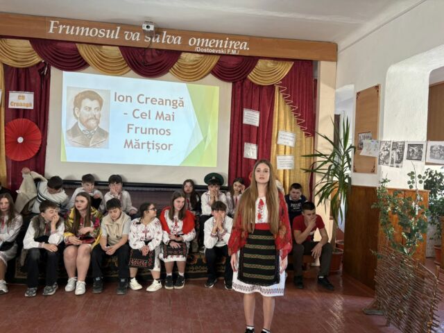 Protagoniștii activității au fost elevii clasei a VII-a ai Gimnaziului „Viorel Ciobanu”, care au participat cu entuziasm și curiozitate la această călătorie în universul poveștilor lui Creangă. Îmbrăcați cu mândrie în costum popular, elevii au demonstrat că tradiția și cultura pot merge mână în mână cu educația modernă. Gestul lor simbolic a transmis un mesaj puternic: identitatea noastră culturală este o moștenire pe care trebuie să o păstrăm și să o transmitem mai departe.